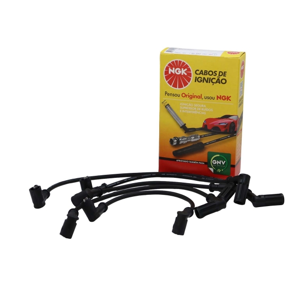 Cabos de silicone de 7mm com filamento de níquel-cromo com alta flexibilidade e alta capacidade de isolação evitando assim fuga de corrente com durabilidade superior. Os cabos NGK montados com supressores de ruído, possuem blindagem metálica permitindo maior dissipação térmica permitindo centelhas de melhor qualidade na vela.